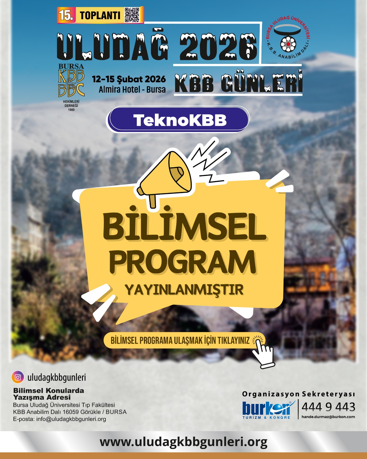 İlkini 1998 yılında olmak üzere her iki yılda bir düzenlediğimiz Uludağ KBB Günleri’ne sizlerin yoğun ilgisi ilk toplantıdan bugüne kadar devam etti. 15. Uludağ KBB Günleri’ne siz değerli meslektaşlarımızı davet etmekten büyük mutluluk duyuyoruz.